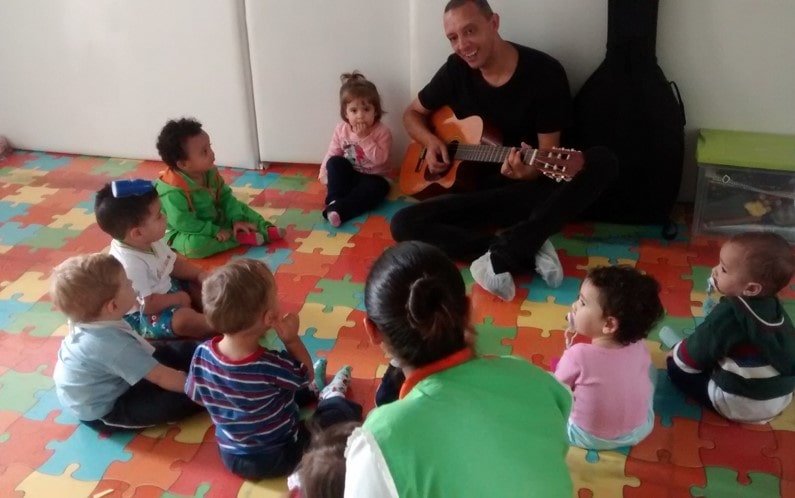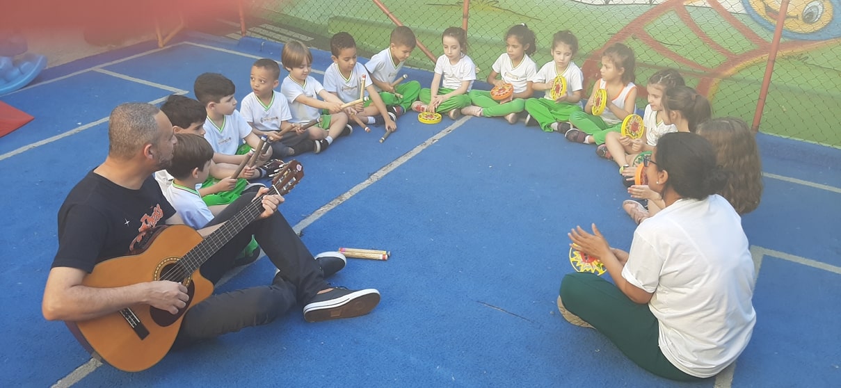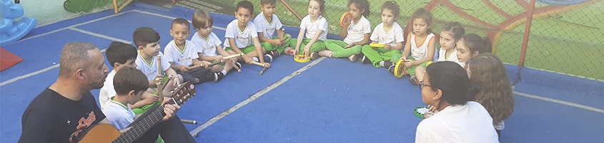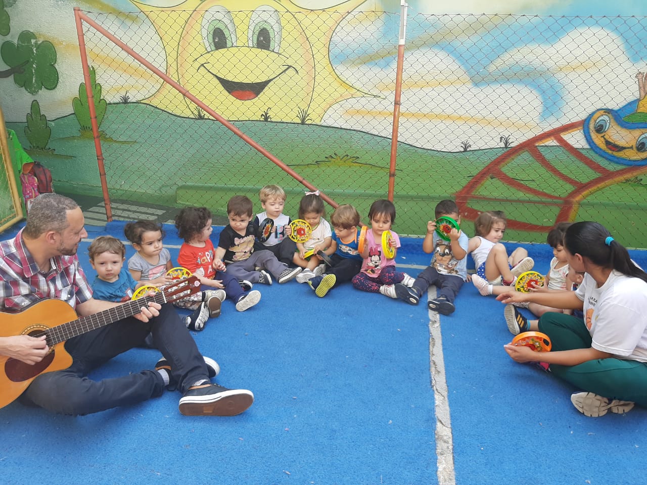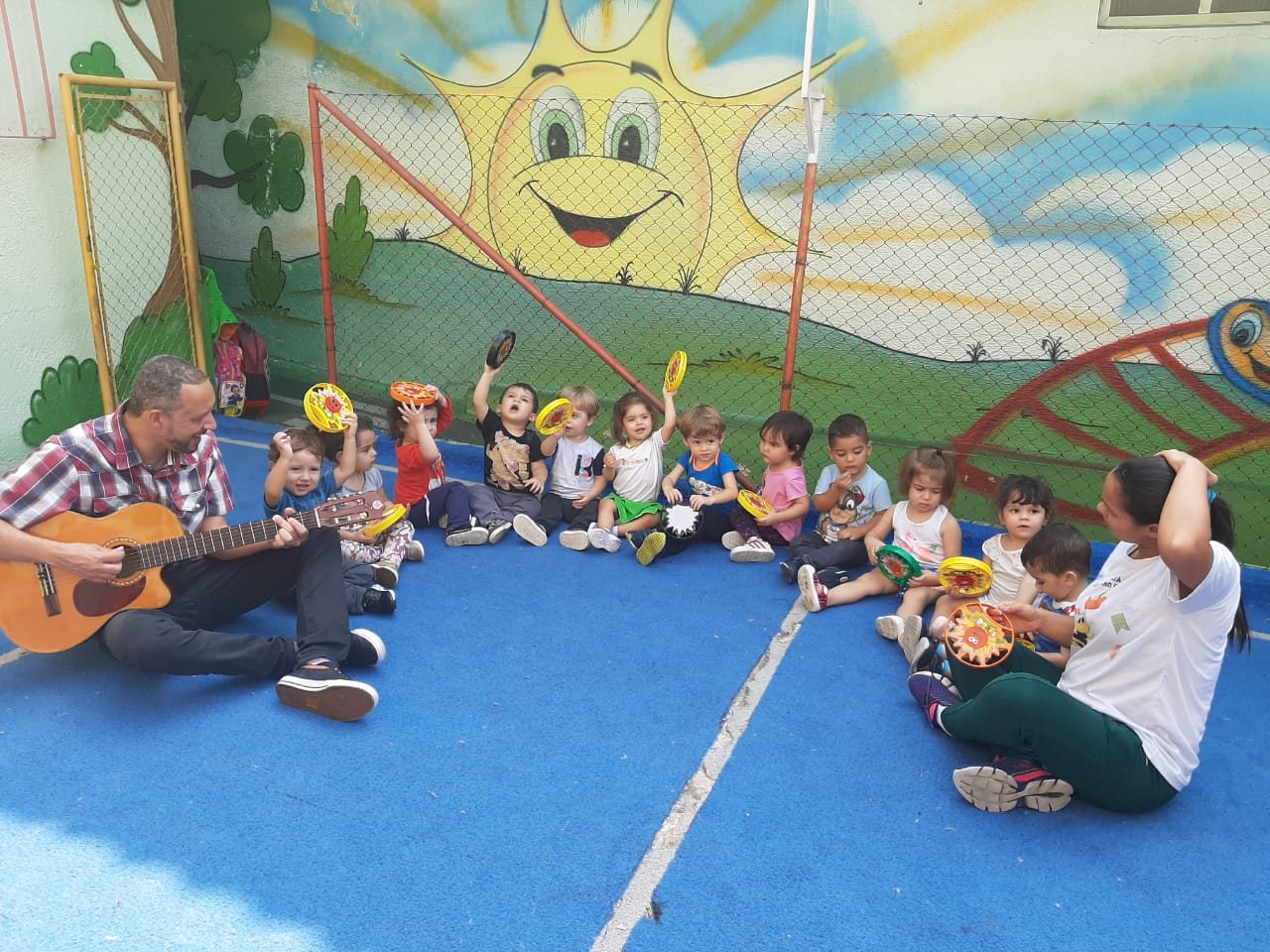 A iniciação musical na Educação Infantil estimula áreas do cérebro que beneficiam o desenvolvimento de outras linguagens e de inúmeras habilidades motoras e intelectuais. É também uma forma que permite-os demonstrar estímulos e expressar sentimentos!